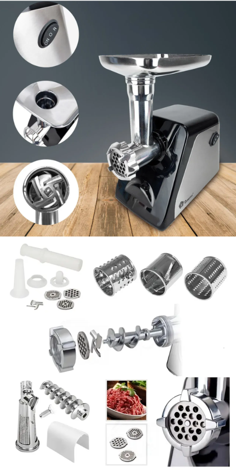 М’ясорубка (3000Вт) — це потужний та багатофункціональний кухонний прилад, який стане незамінним помічником у приготуванні домашніх страв. Завдяки високій потужності 3000 Вт вона швидко та ефективно переробляє м’ясо, овочі та інші продукти.